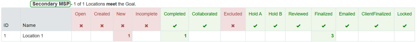 You can adjust the columns to your need, and you will see the goals met (or unmet) by the Secondary.
