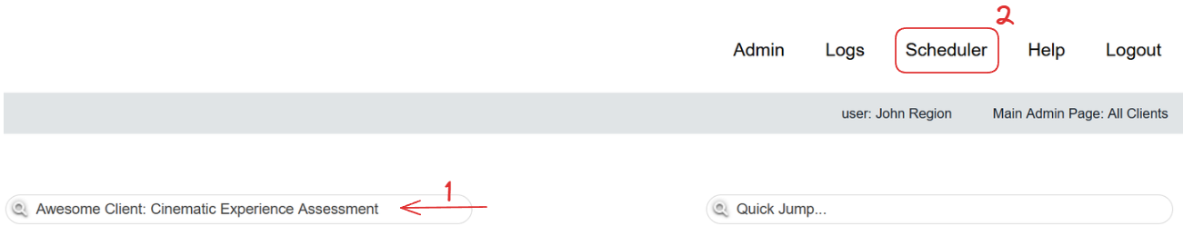 Select a client and survey and simply use the Scheduler button on the top right of your screen.